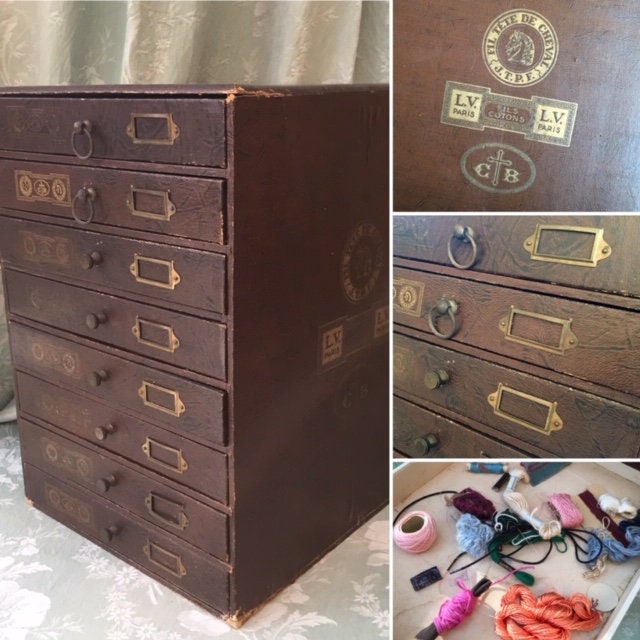 Vintage Wood Sewing Cabinet Thread Spool Storage 1 Drawer 1930s 40s Sewing Cabinet Walnut Veneer Sewing Notions Organizer Original Sewing Cabinet Vintage Wood Sewing Notions Organization